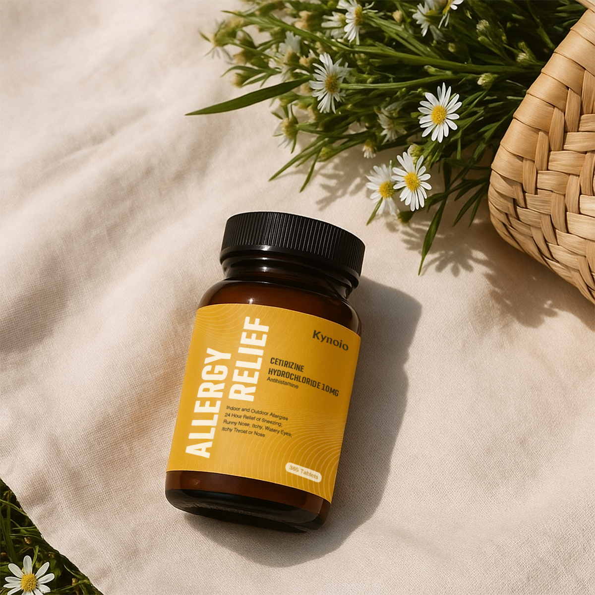 Kynoio Allergy Relief (cetirizine 10 mg) is an antihistamine that uses cetirizine as its main ingredient. Cetirizine blocks a natural chemical called “histamine” that your body releases during an allergic reaction and helps to relieve allergy symptoms.