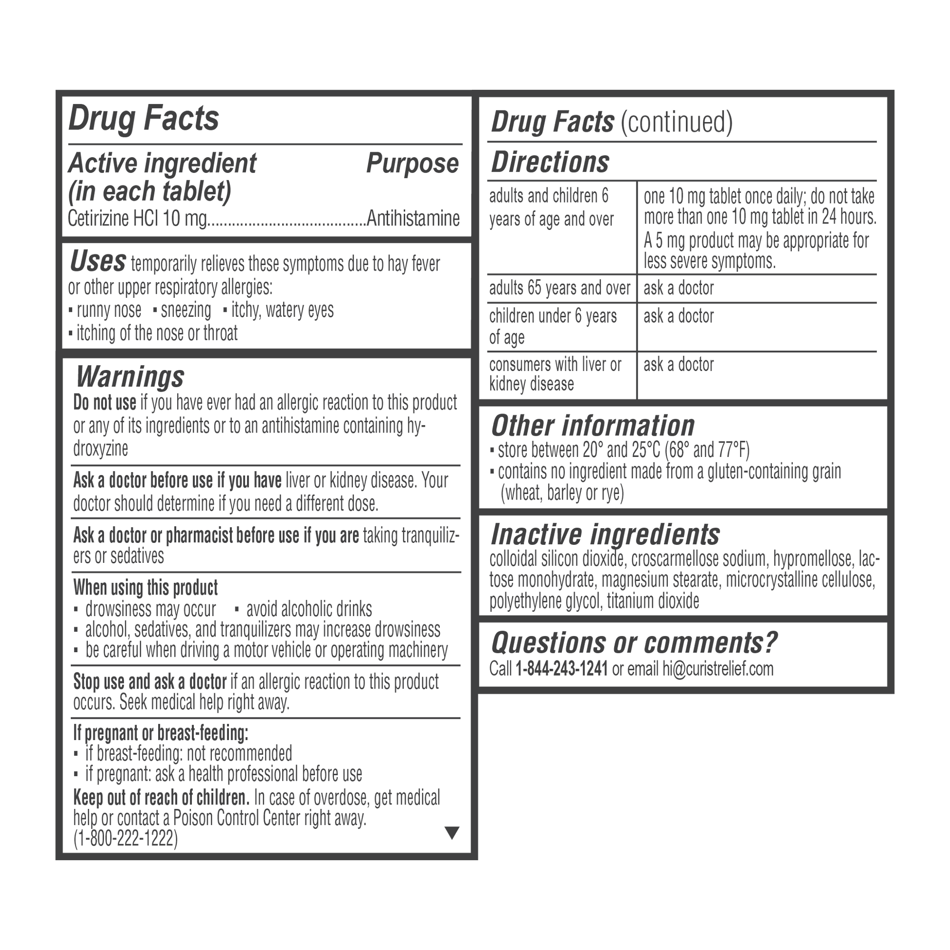 Cetirizine 10 mg is the name and strength of the medicine in the Zyrtec brand. Kynoio Allergy Relief also contains cetirizine 10 mg as its main ingredient, like Zyrtec, but at just a fraction of the price as Zyrtec.